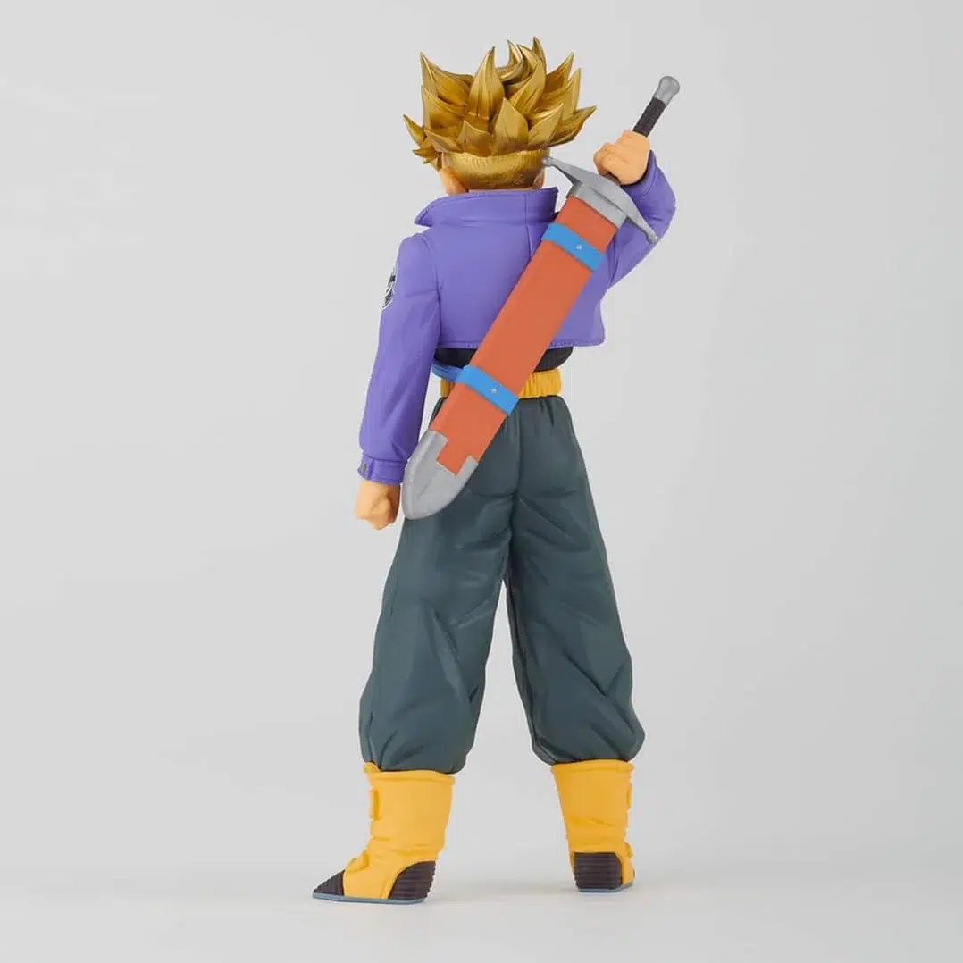 Vive el poder del futuro con esta figura de Trunks Super Saiyan de la línea Blood of Saiyans. Con 17 cm de altura y fabricada en material resistente tipo PVC, esta pieza refleja fielmente la esencia de Trunks: fiereza, determinación y valentía. El cabello rubio erizado, la expresión concentrada y la pose lista para el combate captan ese momento icónico en el que alza su espada contra los androides.