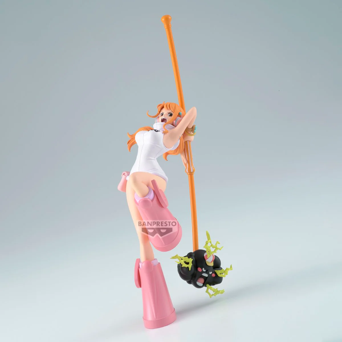 Aquí tienes la figura Nami – Battle Record Collection, con una altura de aproximadamente 15 cm. En esta versión, Nami aparece en pose elegante, posiblemente con su clima-tact o algún accesorio característico, luciendo su atuendo estilizado con detalles de diseño fieles al universo One Piece Film Red. La escultura cuida los pliegues de la ropa, el volumen del cabello y la expresión serena con determinación. La pintura combina tonos cálidos con sombras suaves para resaltar volumen sin saturar. Aunque es figura estática (no articulada), su estética equilibrada la hace perfecta para vitrinas que buscan personajes femeninos con presencia y carácter.