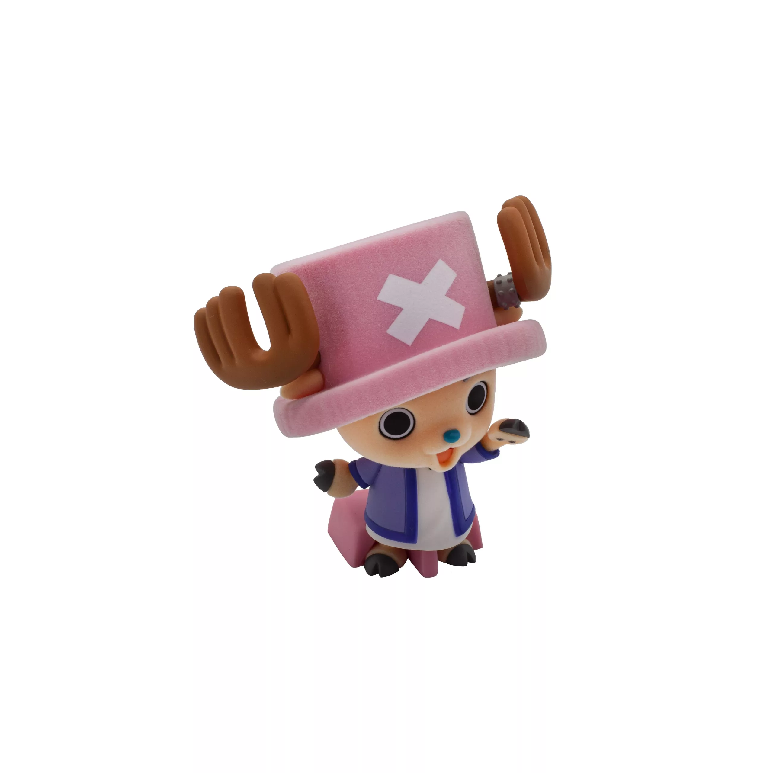 Chopper aparece con su gorro con la “X” característica, cuernos, y una expresión encantadora que captura perfectamente su naturaleza tierna y entrañable. A pesar de su tamaño compacto, logra una presencia visual muy buena, ideal para combinar con otras figuras o para tener un detalle especial en tu vitrina, escritorio o estantería.