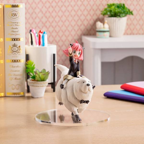 Fabricada en PVC / ABS, esta figura de premio (prize / PM Figure) ofrece detalles cuidados dentro de su gama: la base, las proporciones de Anya y Bond, y la expresión juguetona combinan funcionalidad y atractivo visual.