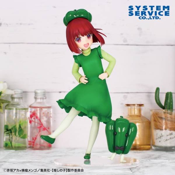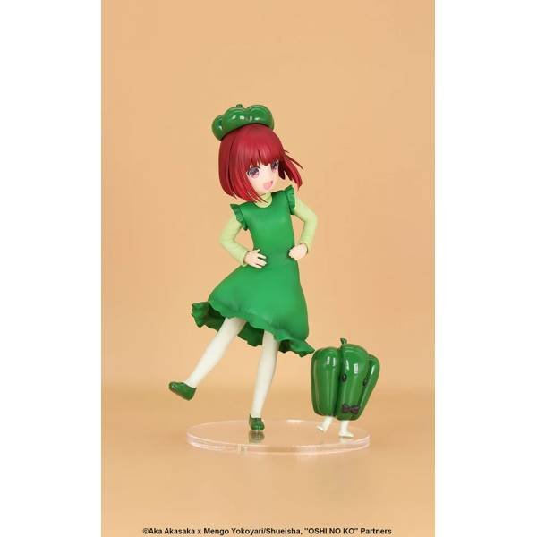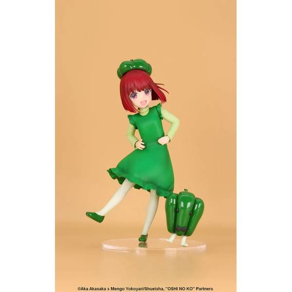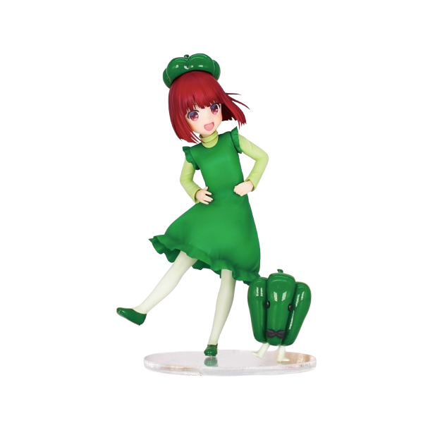 Esta encantadora figura de Vivit de Arima Kana de Oshi no Ko, titulada “Ejercicio de pimiento morrón”, la muestra en una escena divertida y adorable. Vestida con un atuendo verde y un gorro inspirado en el pimiento morrón, Kana aparece bailando con un pequeño y lindo amigo pimiento morrón. Su hermosa y pura sonrisa irradia alegría y captura la diversión y la energía alegre del momento. Esta figura es perfecta para los fanáticos de Kana y agrega un toque de fantasía y alegría a cualquier colección.