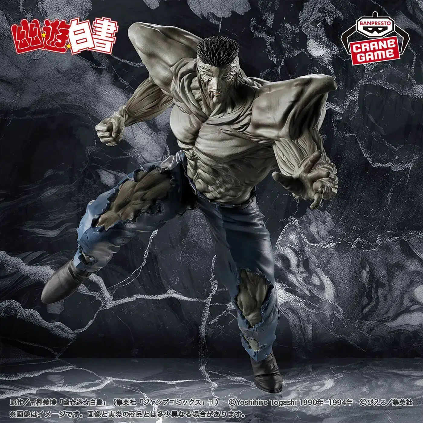 Incorpora a tu colección esta imponente figura de Toguro Jr. proveniente del arco Dark Martial Arts Tournament de Yu Yu Hakusho. Con una altura aproximada de 16 cm, esta pieza destaca por su expresividad, presencia y el aura de poder que emana, ideal para colocarse con orgullo en tu vitrina o convertirse en el punto central de tu estantería geek.