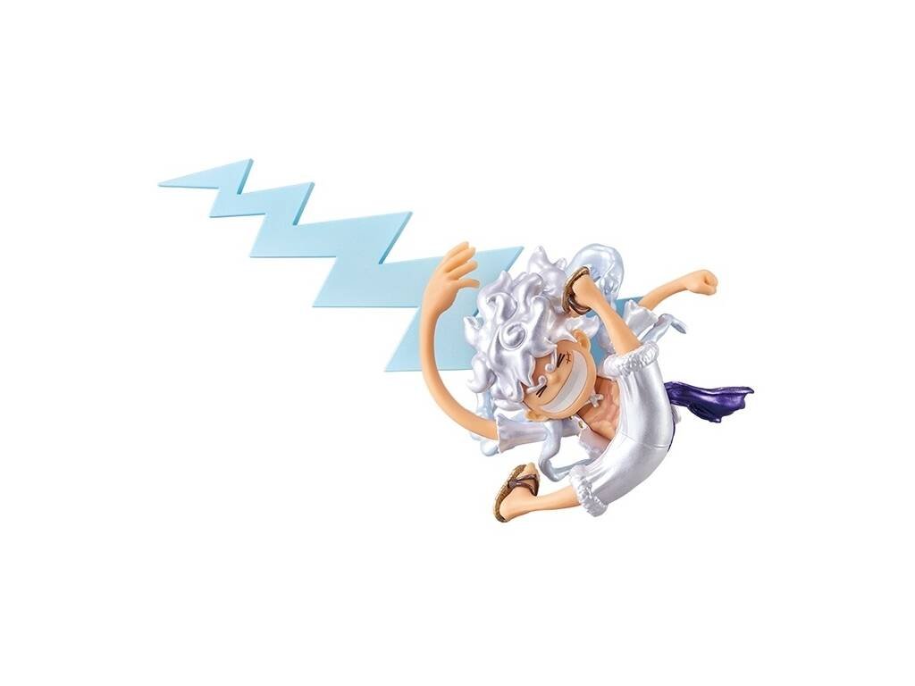 Desata la energía del Dios del Sol en tu colección geek con esta espectacular figura de Monkey D. Luffy Gear 5 (Nika), perteneciente a la línea World Collectable Figure (WCF) de Banpresto.